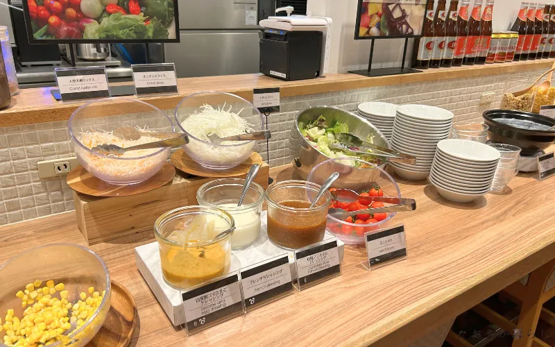 加えて、サラダ・ドリンク・ヨーグルト・軽いデザート類はビュッフェ形式になっていました。